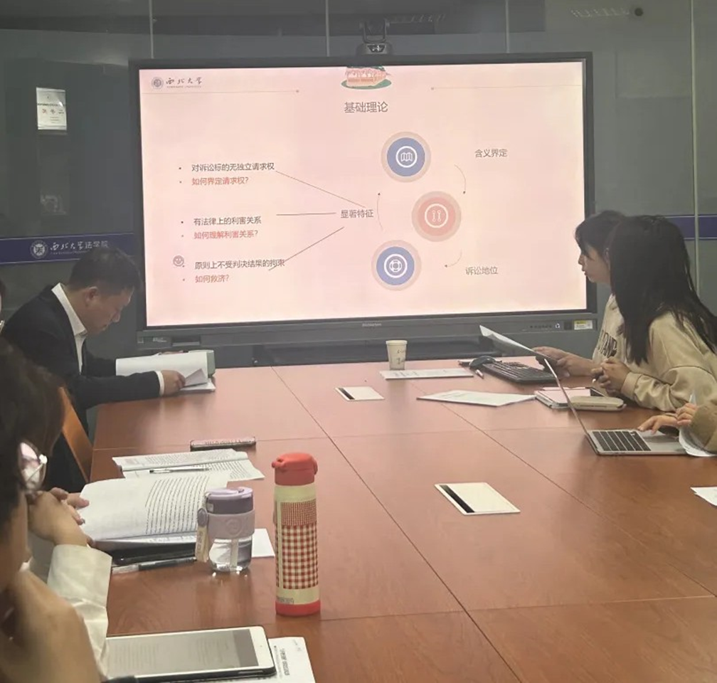 同一时间,研究生汇报第三场于西学楼1006会议室举办,研会邀请了经济法学教研部赵海怡老师进行评议。十位研究生就当下的前沿经济法学问题和社会热点案件,进行了深入的分析和探讨,赵海怡老师除了对同学们论文中的存在的问题进行指点和纠正之外,也参与到讨论之中,给同学们提供了具有指导意义和理论深度的学术思考。