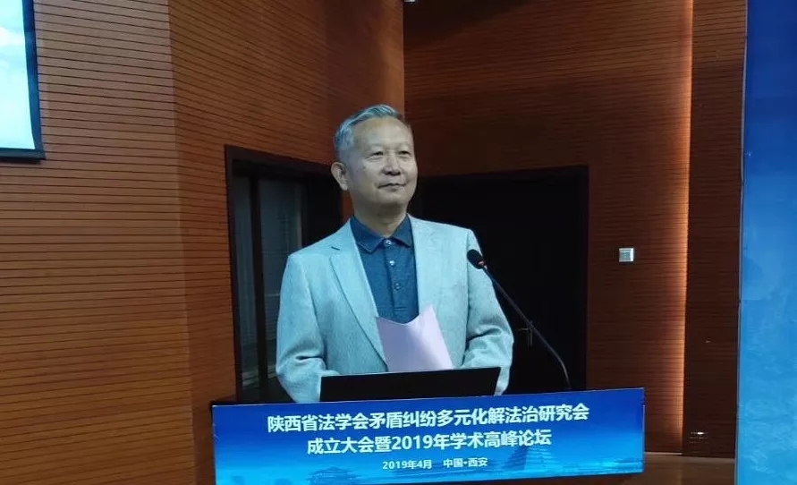 陕西省法学会党组书记、副会长杨建军向陕西省法学会矛盾纠纷多元化解法治研究会授牌,并代表省法学会对研究会的成立表示热烈的祝贺!杨建军对本研究会校企合办的创新特点给予了高度认可,并倡导通过举办学术沙龙或者研讨会,增强学术氛围,积极响应党的号召,回应人民的呼声,满足人民群众的需要。