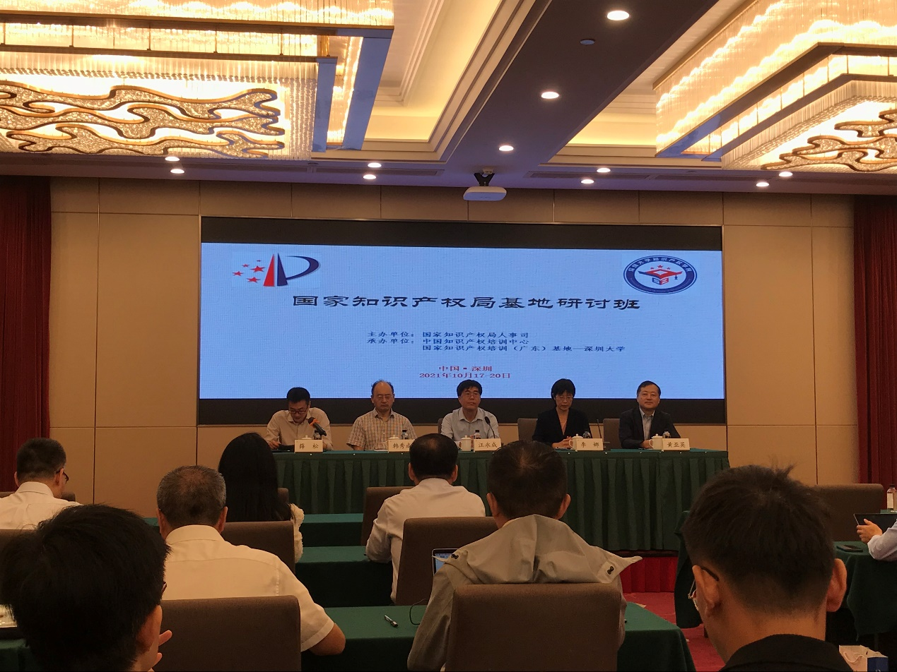 1017日至20日,2021国家知识产权培训基地研讨班深圳举办,本次研讨班由国家知识产权局人事司主办,中国知识产权培训中心、国家知识产权培训(广东)基地深圳大学承办。深圳大学党委常委、副校长王永成、中国知识产权培训中心副主任李娜出席开幕式并致辞。来自全国18个省(直辖市)24个国家知识产权培训基地、国家中小微企业知识产权培训基地的的代表50余人参加了本次研讨班,活动由中国知识产权培训中心教务一处处长薛松主持。学院副院长邱洪华教授、刘桢博士参加了本次培训班。
