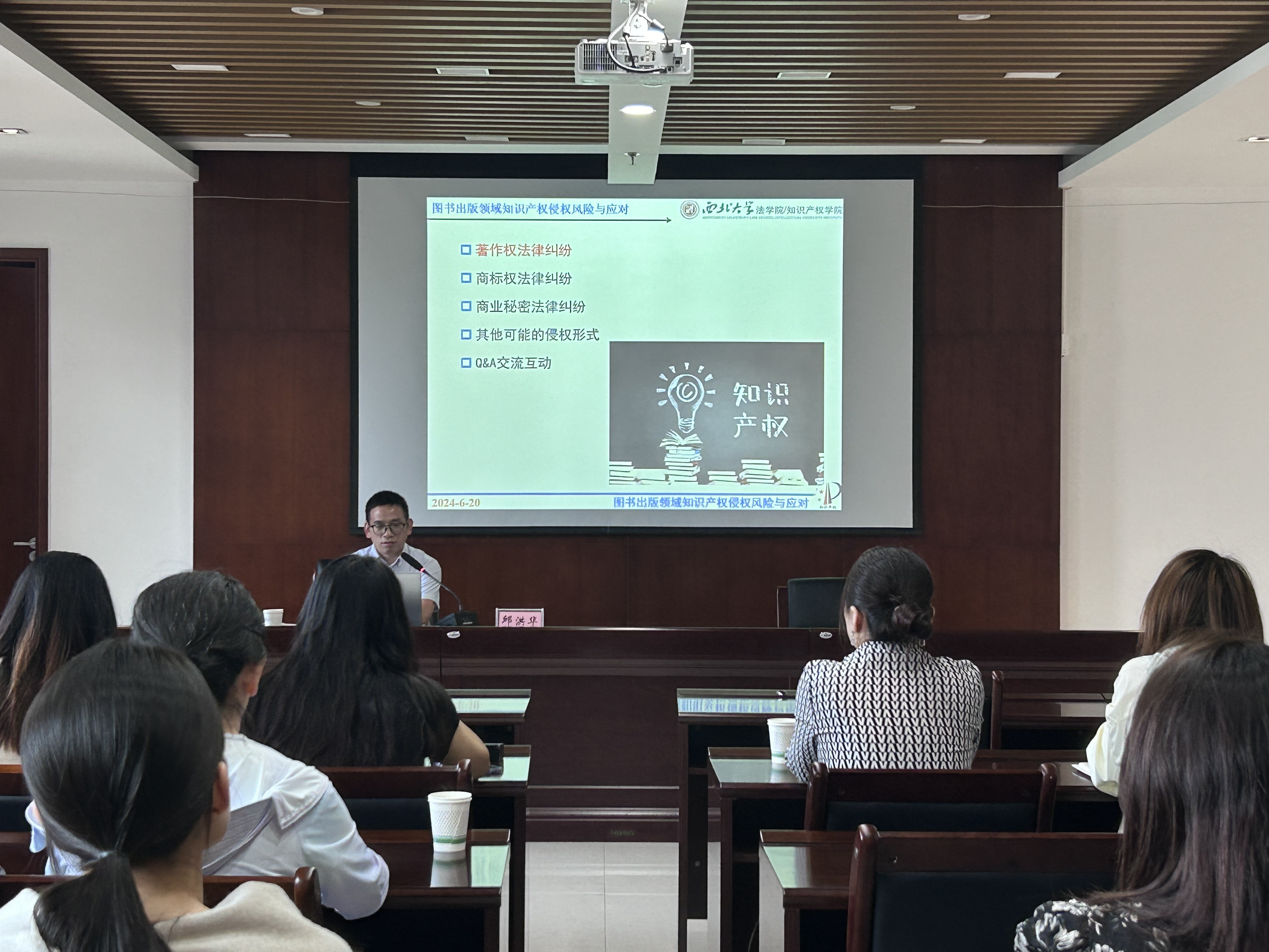 2024620日,我院邱洪华教授以图书出版领域知识产权侵权风险与应对为题,为陕西省科学技术出版社做专题报告。陕西科学技术出版社李珑副主编主持了专题讲座,出版社全体编校专家老师参加了本次讲座并与邱洪华教授进行了积极的互动交流。