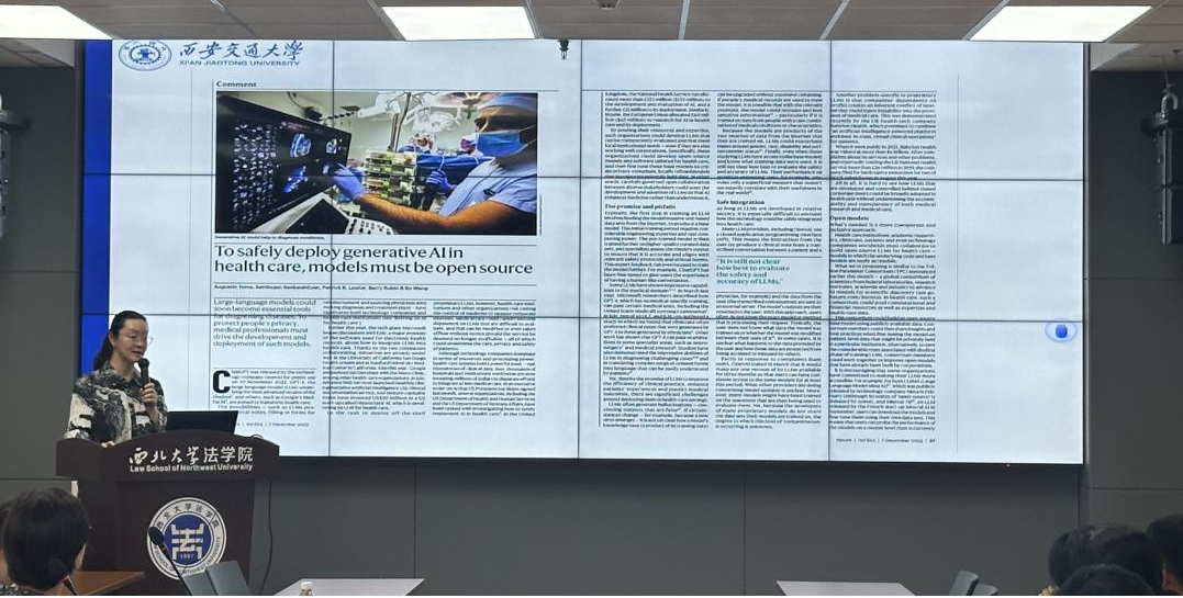 2025年6月11日,省法学会卫生法学研究会2025年学术沙龙于242net必赢太阳能西学楼0904会议室顺利举行。本期学术沙龙主题为《医学人工智能的伦理法律挑战:以知情同意和伦理审查为例》,由242net必赢官方、省法学会卫生法学研究会联合举办。西安交通大学242net必赢王玥教授主讲,中国医学伦理学编辑部吉鹏程主任、省法学会卫生法学研究会副会长阎春霞教授、省法学会卫生法学研究会副秘书长傅强博士、省法学会卫生法学研究会常务理事尉琳副教授、242net必赢官方民商法学教研部主任涂慧副教授参与与谈。省法学会副会长、242net必赢官方院长王思锋教授、省法学会研究部陈庭乐、省法学会卫生法学研究会会长杨丽珍教授参加了本次学术沙龙活动。活动由省法学会卫生法学研究会副会长兼秘书长刘建仓副教授主持。