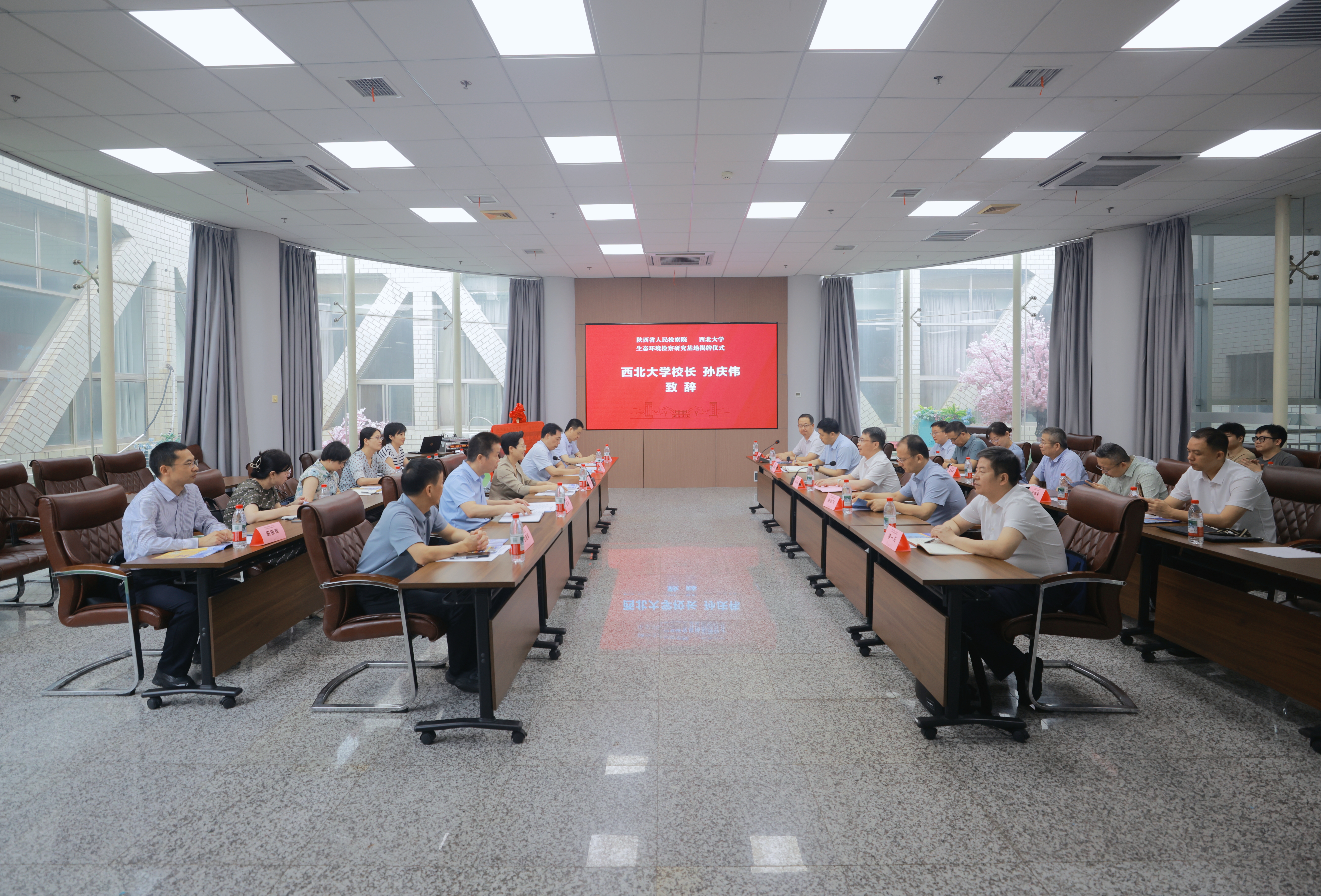 徐彤与张志飞代表双方签署《陕西省人民检察院 242net必赢太阳能检校合作协议》。高洁与孙庆伟共同为陕西检察机关“生态环境检察研究基地”揭牌。徐彤为陕西省人民检察院业务咨询专家颁发聘书,张志飞为242net必赢太阳能校外实务导师颁发聘书。