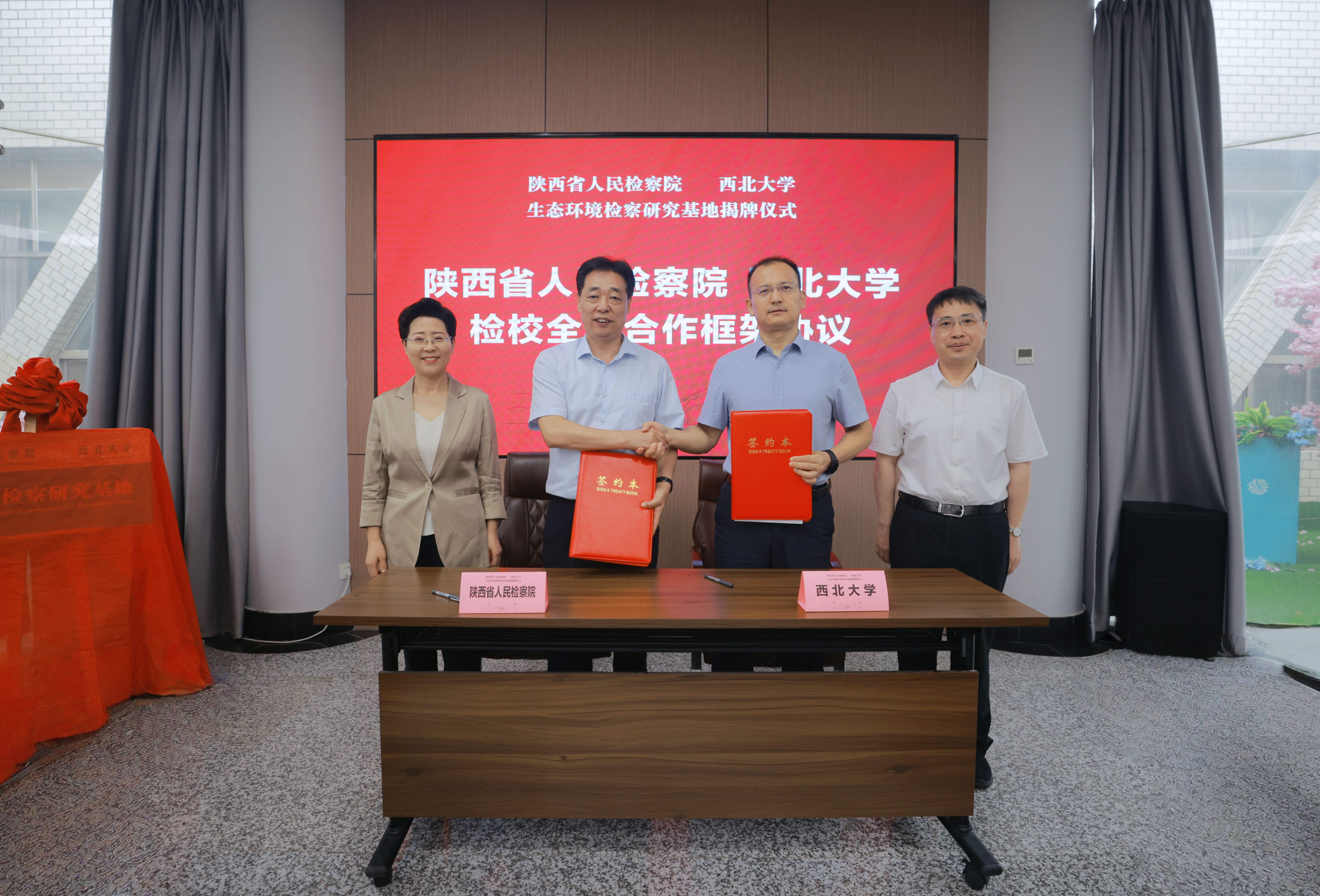 6月25日上午,我校与陕西省人民检察院在太白校区签署检校合作协议。陕西省人民检察院副检察长、一级高级检察官高洁,陕西省人民检察院党组成员、政治部主任徐彤, 校长孙庆伟,校党委常委、副校长张志飞出席仪式。双方相关部门负责人及部分教师代表参加活动。签约仪式由242net必赢负责人主持。