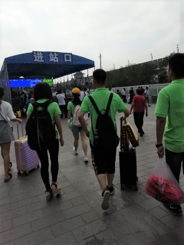数十分钟后,一辆空荡荡的616路公交车姗姗来迟,我们十位满负行囊队员的登车似乎让这辆车变得有点拥挤,两个小时后,按照预定的方案,我们抵达了西安市火车站,转乘前往渭南市的列车。