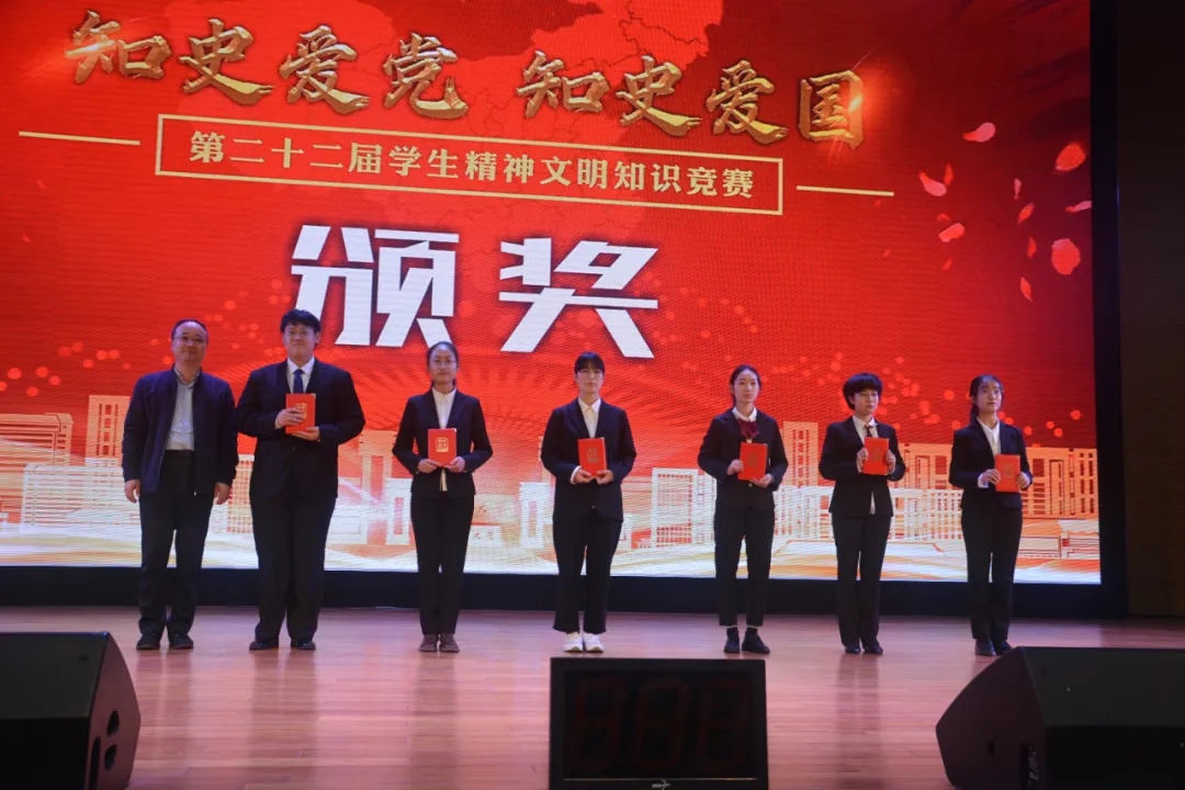 由洪子威选手代表我院上台领奖,由校领导为我院颁发奖状并合影留念。