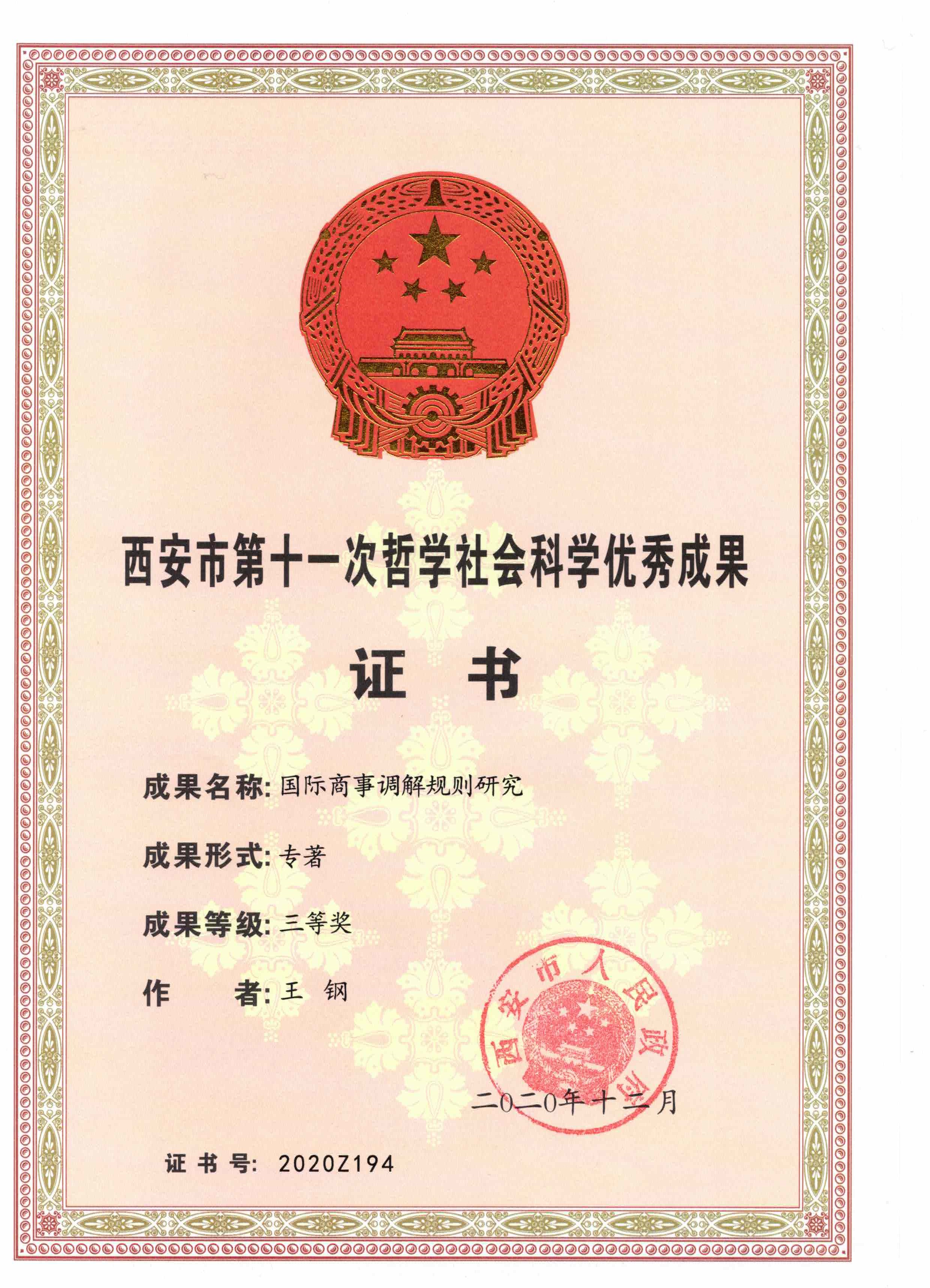日前,西安市人民政府公布了西安市第十一次哲学社会科学优秀成果奖评奖结果,我院本次共推荐12项科研成果申报参评,获奖5项,其中,一等奖1项、二等奖1项、三等奖3项。成果类型涵盖著作、论文和调研报告。实现了获奖质量、获奖数量的双重突破,成果类别的全覆盖,创我院历年西安市哲学社会科学成果奖励历史新高。