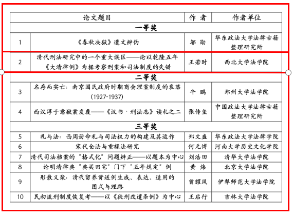 近日,学院王若时老师在质疑成说,重述法史征文评奖中荣获一等奖,所提交的论文为清代刑法研究中的一个重大误区——论以乾隆五年大清律例为据考察刑案和司法制度的失错。本次评奖采取双向匿名方式,评出优秀论文一等奖作品2篇,二等奖作品2篇,三等奖作品6篇。